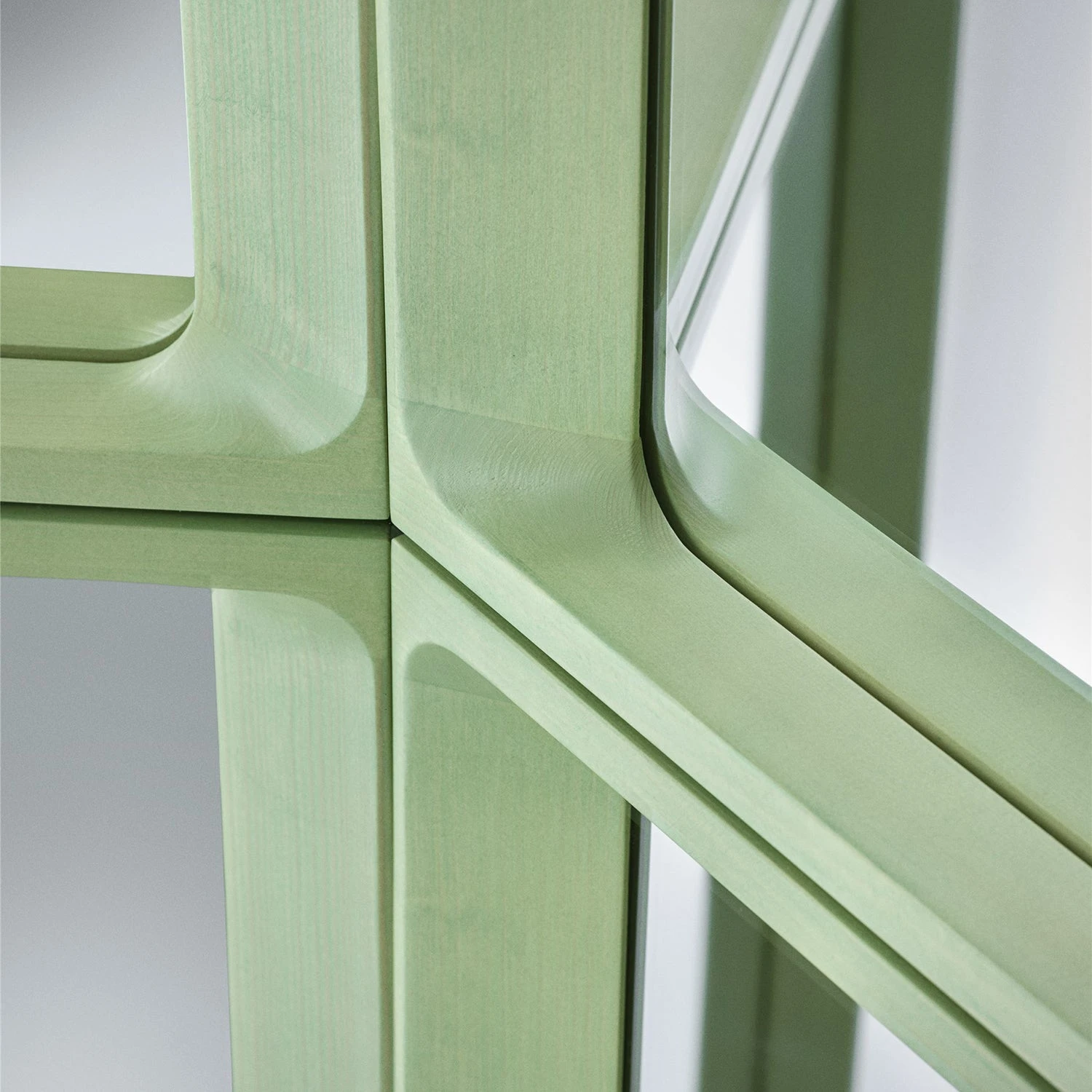 ‘The Arced Mirror’s characteristic shape is both angular and rounded, blending my research on material extrusions with the classical shape of windows I see on my way to work in Sydney. I wanted to take a form that fits in various environments and put a subtle twist on it: the milled details and stained wood material make for a modern interpretation of a traditional form. That gives it a sense of familiarity while being pared back and sophisticated’ says Australian designer Rhys Copper