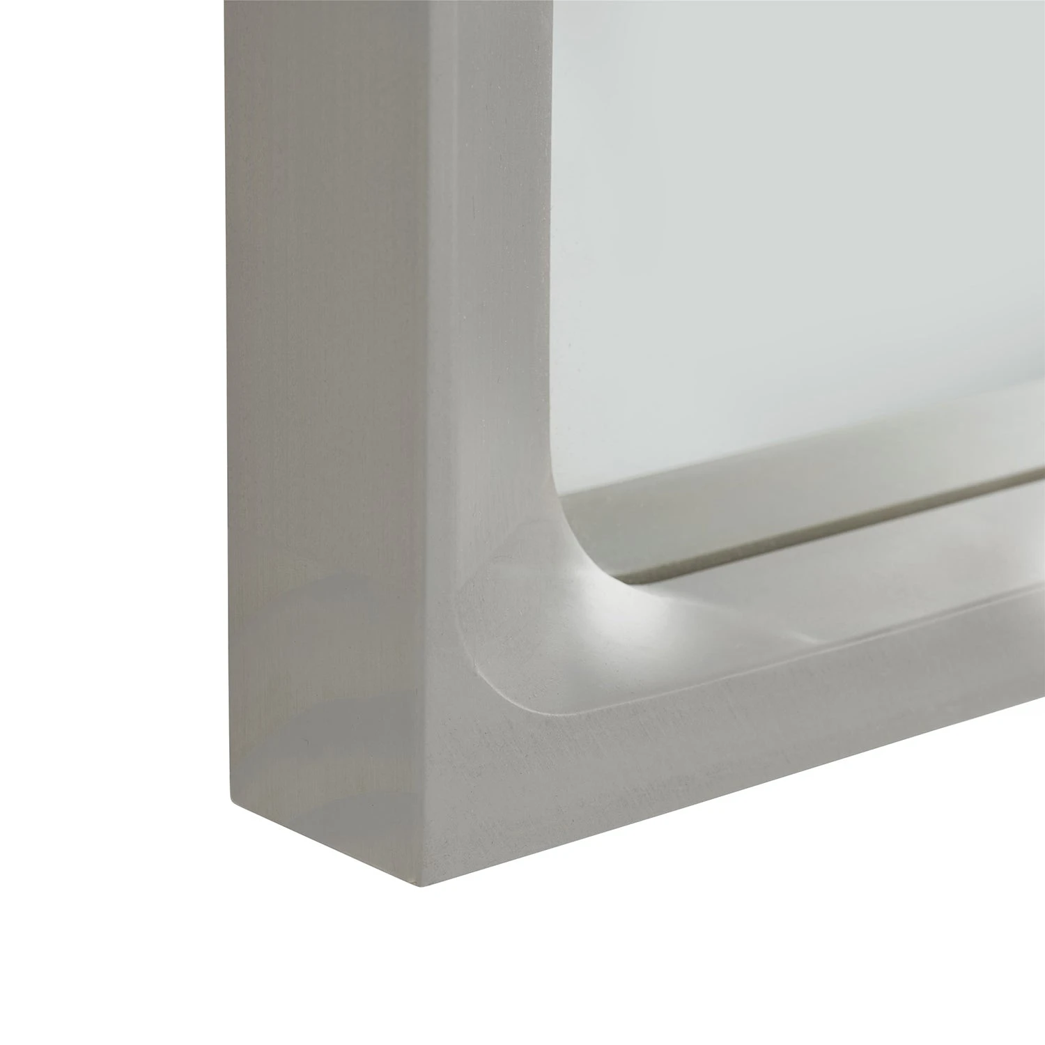 To clean the Arced Mirror, use a mild glass spray and wipe with a soft, dry cloth immediately after spraying. Do not use acids or alkaline cleaning products. Ensure the areas between the frame and glass are dry. Avoid spraying the spruce wood frame. Make sure that the mirror is dry when cleaning is done.