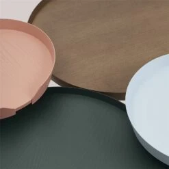 The Around Coffee Table brings a new perspective to its typology through the characterful wooden veneer frame that runs along the edge of the table, echoing the ideas of Scandinavian design. With its round shape and multiple sizes, the Around Coffee Table can be used in a multitude of settings, on its own or in groups, in any living room, lounge setting, lobby area or hotel room.