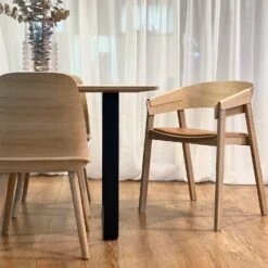 Referencing the values of honest craftsmanship and Scandinavian materiality, the Cover Chair is an elegant perspective on the timeless wooden armchair. With its curved backrest and folded armrest covers, the Cover Chair explores the possibilities of wooden veneer, paired with a deep comfort, modern expression and base in solid wood. Echoing the seamless appearance of the chair, it features no visible screws for a simple touch.