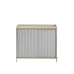 ‘Enfold sideboard came from the many factory visits that I do as a designer, prompting me to explore the aesthetic appeal of industrial objects. I wanted to translate this element into the modern home, combined with an appreciation of the Scandinavian design tradition. The Enfold Sideboard joins a warm touch of oak with a contemporary look of its ridged front, softening up the cold steel material and binding it together with the sideboard’s oak components. The design is a new perspective on the traditional sideboard with an at once industrial and homey feeling, characterised by its unique duality of materials’ – says designer Thomas Bentzen