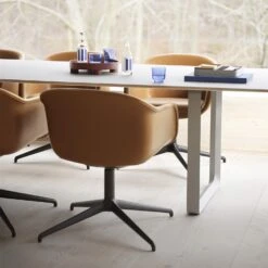 A sculptural yet distinctly ergonomic seat makes the Fiber Conference Armchair ideal anywhere we spend an extended time seated. Its interior shell is made of 99% recycled plastic, while its spacious seat and embracing curves are fully upholstered with a soft fixed cushion, providing maximum comfort in public spaces and the home alike.
