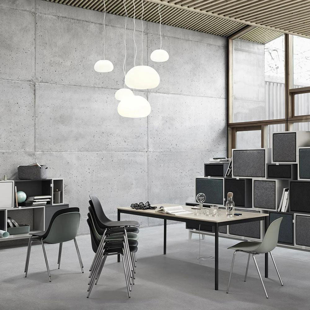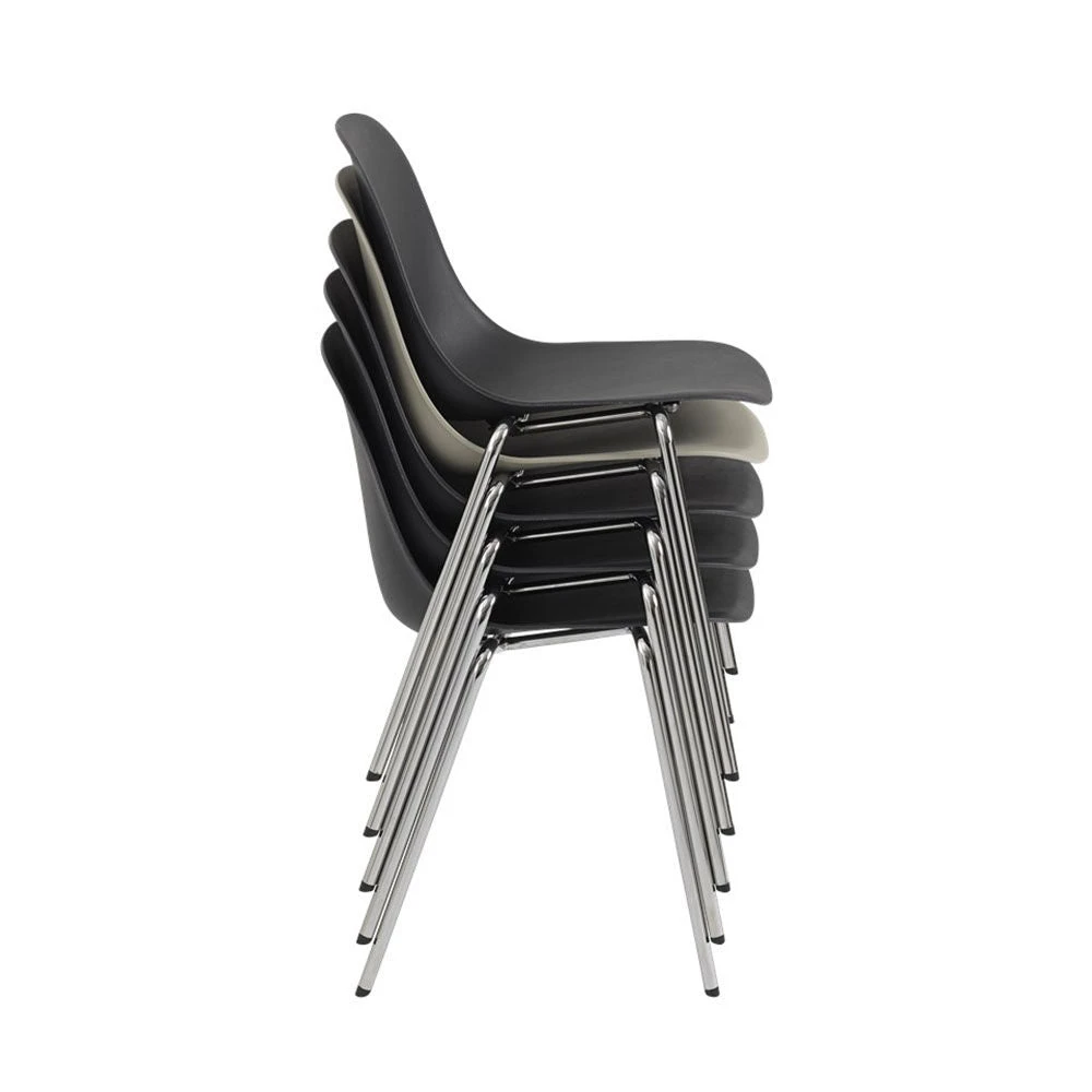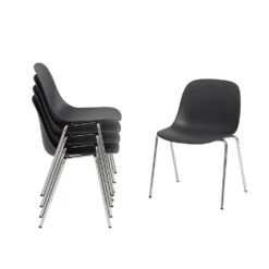 The Fiber Side A-base Chair has the same light expression as the Fiber Side Chair, but with a stackable base, which makes it an ideal contract market chair. By stacking onto the a-shaped chrome base instead of the seat, the fiber seats and upholstered seats avoid scratches or pressure marks.
