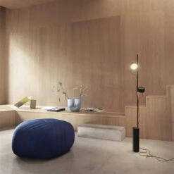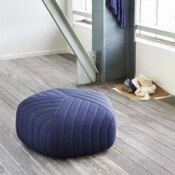 The Five Pouf frame and feet are made from FSC™-certified (FSC-C028824) wood, moulded PU foam, and upholstered with Kvadrat textile. The base is made from FSC™-certified (FSC-C028824) wood and is coated with moulded foam, which ensures long-lasting comfort without loss of shape. The pouf is then top-wadded to add shape to the quilt.
