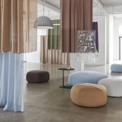 The Five Pouf frame and feet are made from FSC™-certified (FSC-C028824) wood, moulded PU foam, and upholstered with Kvadrat textile. The base is made from FSC™-certified (FSC-C028824) wood and is coated with moulded foam, which ensures long-lasting comfort without loss of shape. The pouf is then top-wadded to add shape to the quilt.