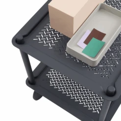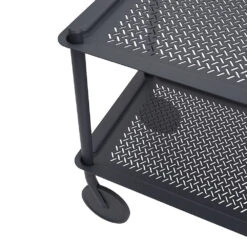 The Flow Trolley brings the concept of functional design into a modern context through its grooved trays in embossed metal for a contemporary expression, paired with the flexibility of its wheels that allows for it to be moved from one room into the other. Designed in a monochrome look, the Flow Trolley adds modern storage to any space in the home, workplace or hospitality setting.