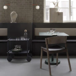 “With the Flow Trolley, we wanted to create a versatile design that could be used in any setting, be it at home, in the workplace or in a hotel room. With its grooved trays in embossed metal that make for an understated vibrancy, the Flow Trolley adds a contemporarily elegant touch to a traditional form while bringing simple functionality into everyday life.” – Normal Studio