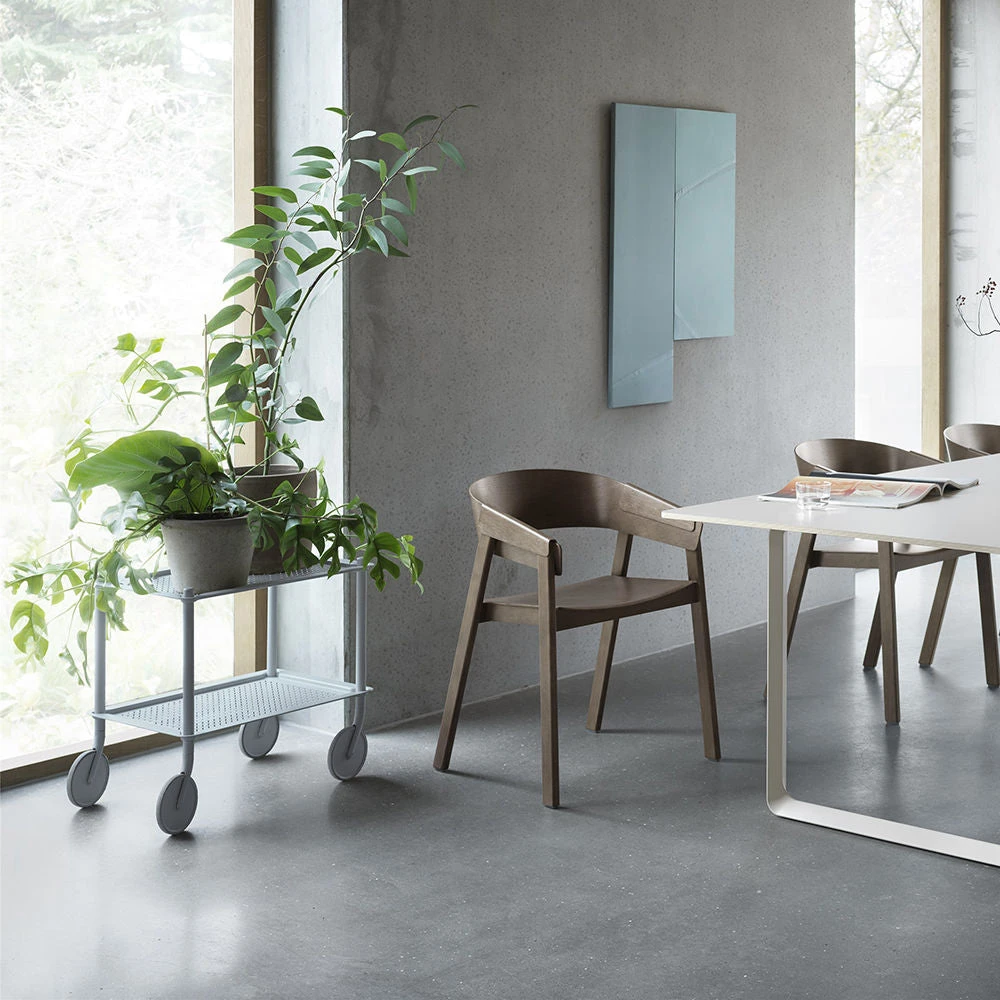 “With the Flow Trolley, we wanted to create a versatile design that could be used in any setting, be it at home, in the workplace or in a hotel room. With its grooved trays in embossed metal that make for an understated vibrancy, the Flow Trolley adds a contemporarily elegant touch to a traditional form while bringing simple functionality into everyday life.” – Normal Studio
