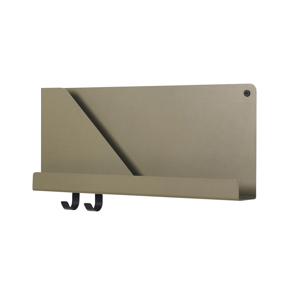 Imitating the look of folded paper yet shaped in metal, the Folded Shelves have a contemporary, functional character. The shelves come with two hooks and two bolts for mounting on the wall. The Folded Shelves are a modern and friendly way to add storage to any home or professional space.