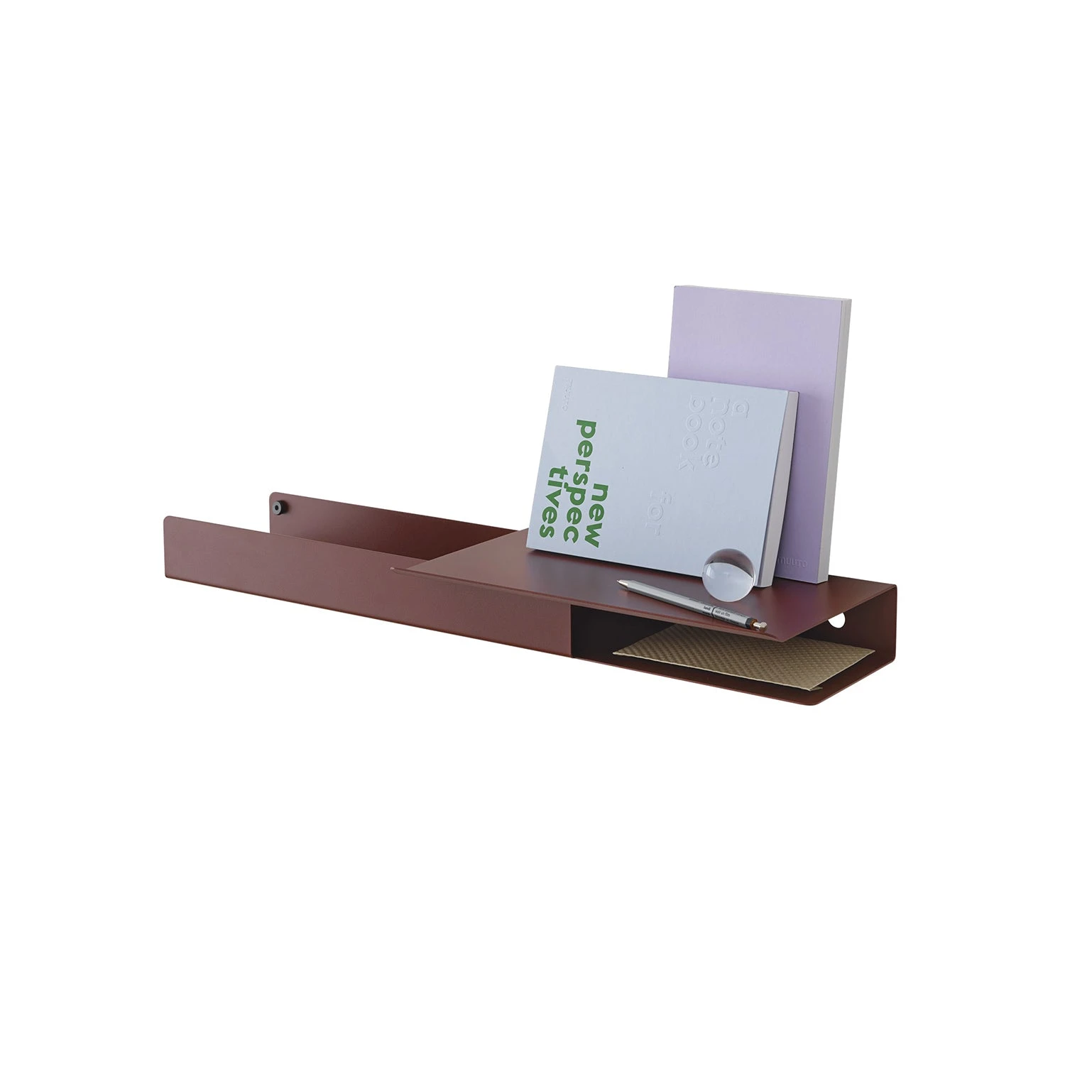 Imitating the look of folded paper yet shaped in metal, the Folded Shelves have a contemporary, functional character. The shelves come with two hooks and two bolts for mounting on the wall. The Folded Shelves are a modern and friendly way to add storage to any home or professional space.