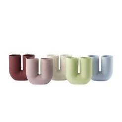 Earthenware – Liquid earthenware clay is poured into a plaster mould from which the design is moulded. The Kink Vase is then polished with a wet sponge and fired at 1000°. After firing, the design is glazed with glossy glaze on the inside and a matt glaze on the outside, the design is then taken to the kiln again, this time at 1100°.