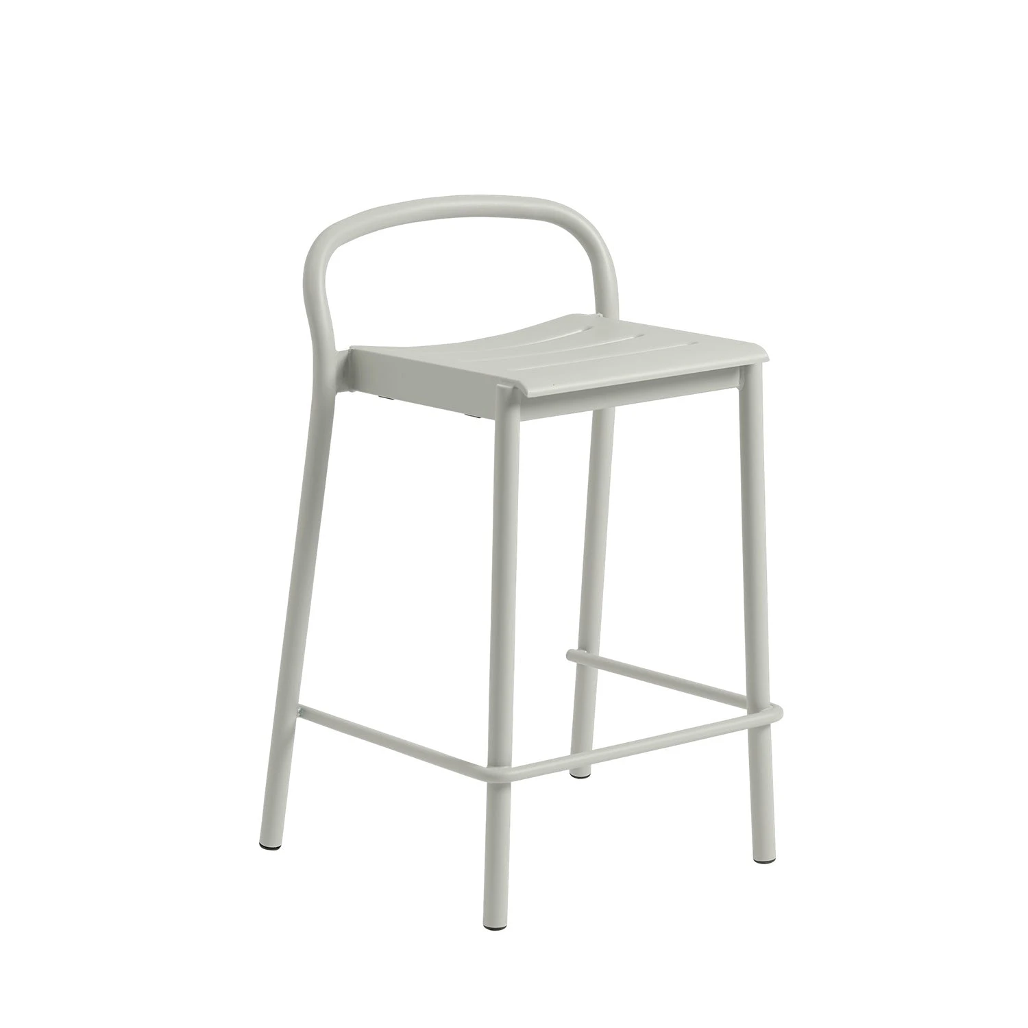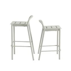 Manufactured in weather and UV-resistant matte powder coated galvanised steel with a small spacing in the seat giving an easy outflow of water. Linear Steel Counter Stool stacks up to 5 chairs on the floor.