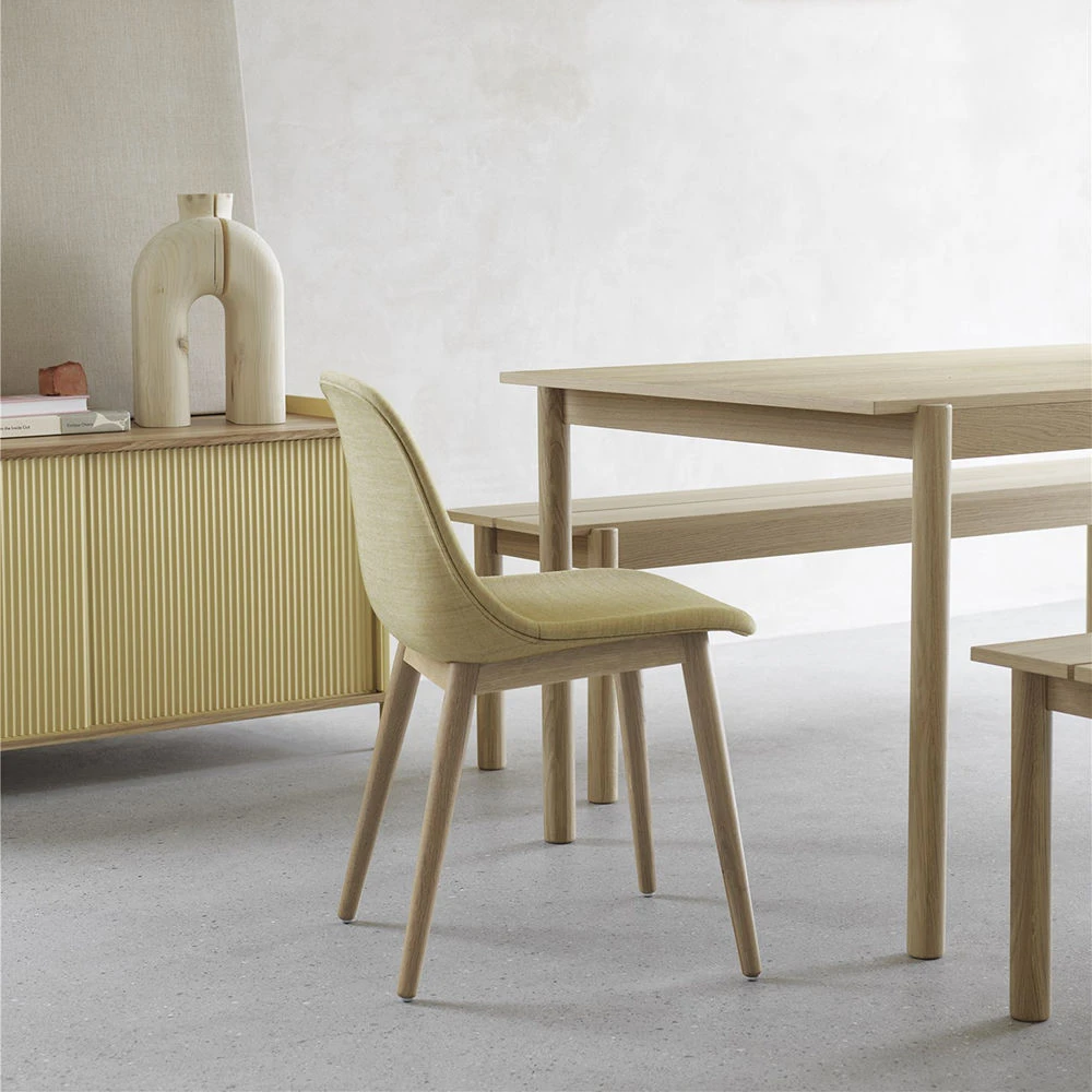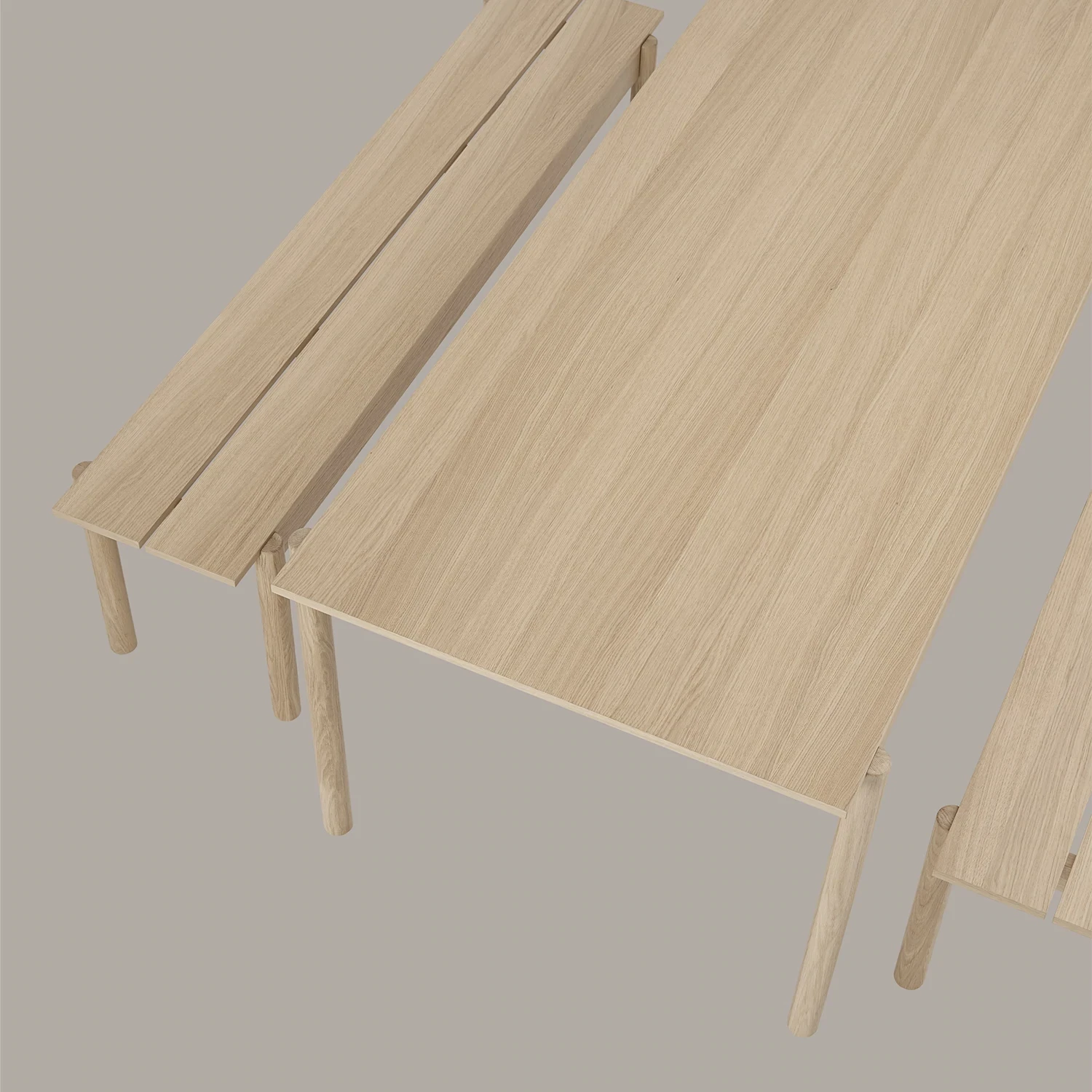 The Linear Wood Table and Bench bring a simple and elegant perspective to wooden furniture through its modern form language with understated details for a long-lasting expression. Kept visually clean for long-lasting aesthetics, the Linear Series finds its distinct character through subtle detailing and a simple expression. Pair the table with the bench, designed in proportions that allows for it to slide easily under the table.