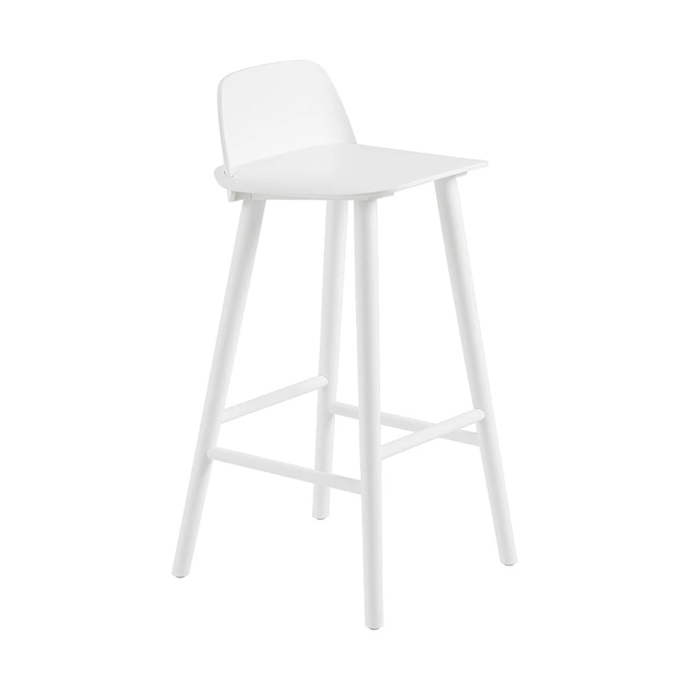 The Nerd Bar Stool is designed with a playfully contemporary expression, joined by its wooden Scandinavian materiality. The seamless integration of its back and seat makes for a characterful detail alongside the curved edges of its seat.