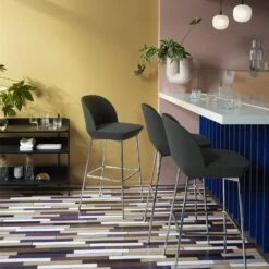 Combining modern, geometric lines with a contemporary expression and comfortably soft seat, the Oslo Counter and Bar Stool brings a refined perspective to the form through its playful lines and embracing back, joined by the comfort of its footrest, allowing its user to sit at multiple angles for many hours at a time. The Oslo Counter and Bar Stool adds an elegant touch to any space in a home, restaurant or workplace.