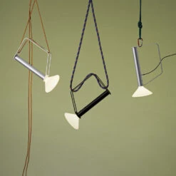 Piton is an untraditional take on the battery-powered portable lamp, playfully referencing the archetypal flashlight. Refined anodi s ed extruded aluminium enhances its elegant form and distinct functionality inspired by tools used for mountain climbing. It is a versatile ambient light with 6 hours of battery life on 100% brightness and 13,5 hours on 50% brightness that can be used lying, standing, tilting on a shelf or suspended, depending on the space or spot you want to illuminate, effortlessly moving between indoors and outdoors.