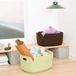 The Restore Basket provides stylish, functional storage for the home or office. Crafted in fibres made using 100% recycled plastic, it offers a practical way to organise everyday items. The basket, available in multiple colours and sizes, is ideal for storing throws, toys, or clothing.