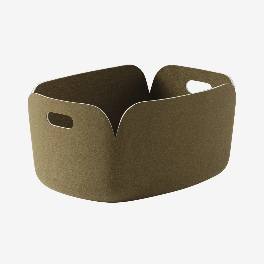 Made from a felt made of recycled plastic bottle fibers, the Restore Round Basket is a functional and versatile storage unit that can be used for almost any object from laundry to blankets to children’s toys.