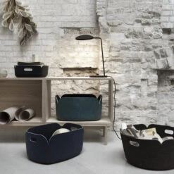 Made from a felt made of recycled plastic bottle fibers, the Restore Round Basket is a functional and versatile storage unit that can be used for almost any object from laundry to blankets to children’s toys.