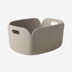 Made from a felt made of recycled plastic bottle fibers, the Restore Round Basket is a functional and versatile storage unit that can be used for almost any object from laundry to blankets to children’s toys.