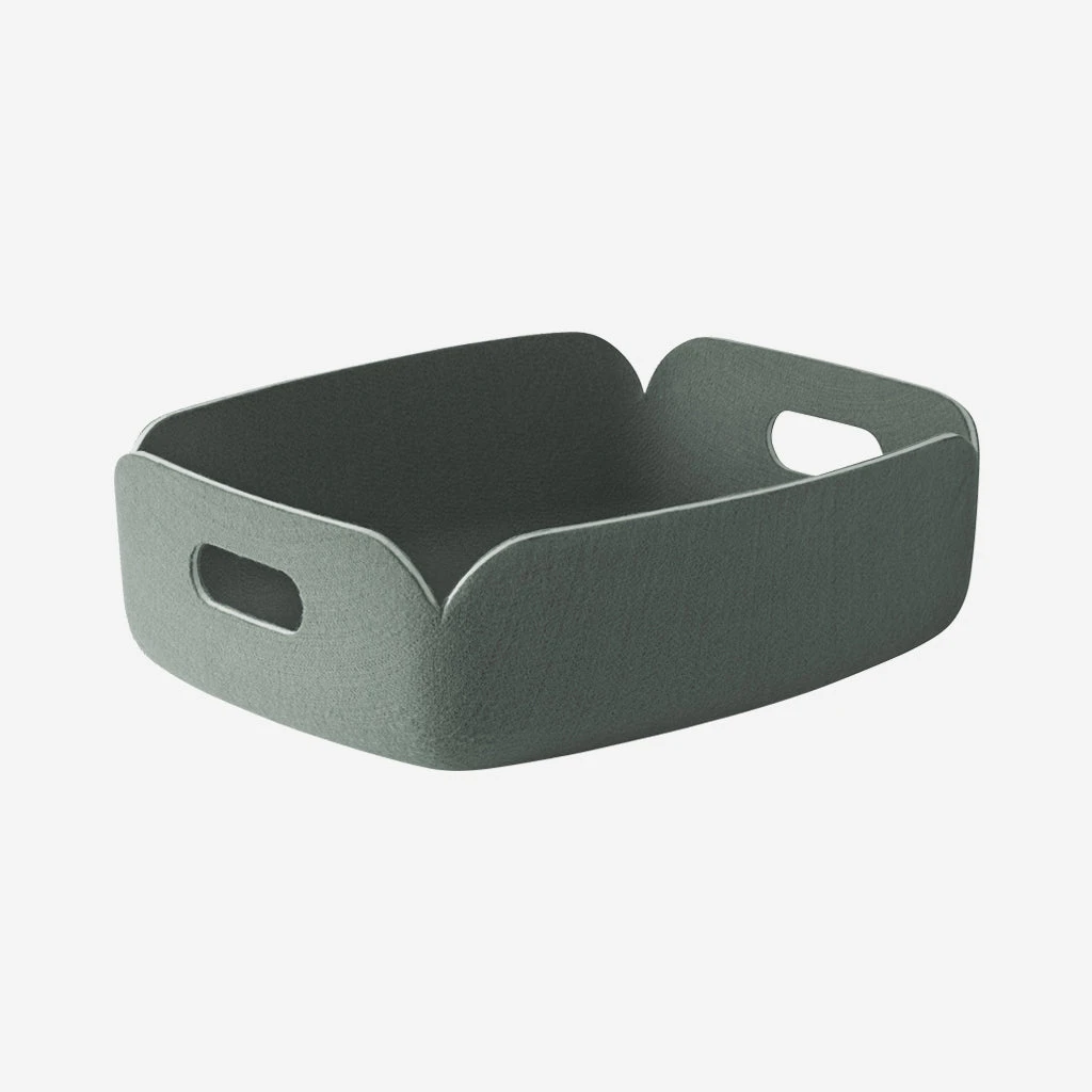Made from a felt made of recycled plastic bottle fibers, the Restore Round Basket is a functional and versatile storage unit that can be used for almost any object from laundry to blankets to children’s toys.