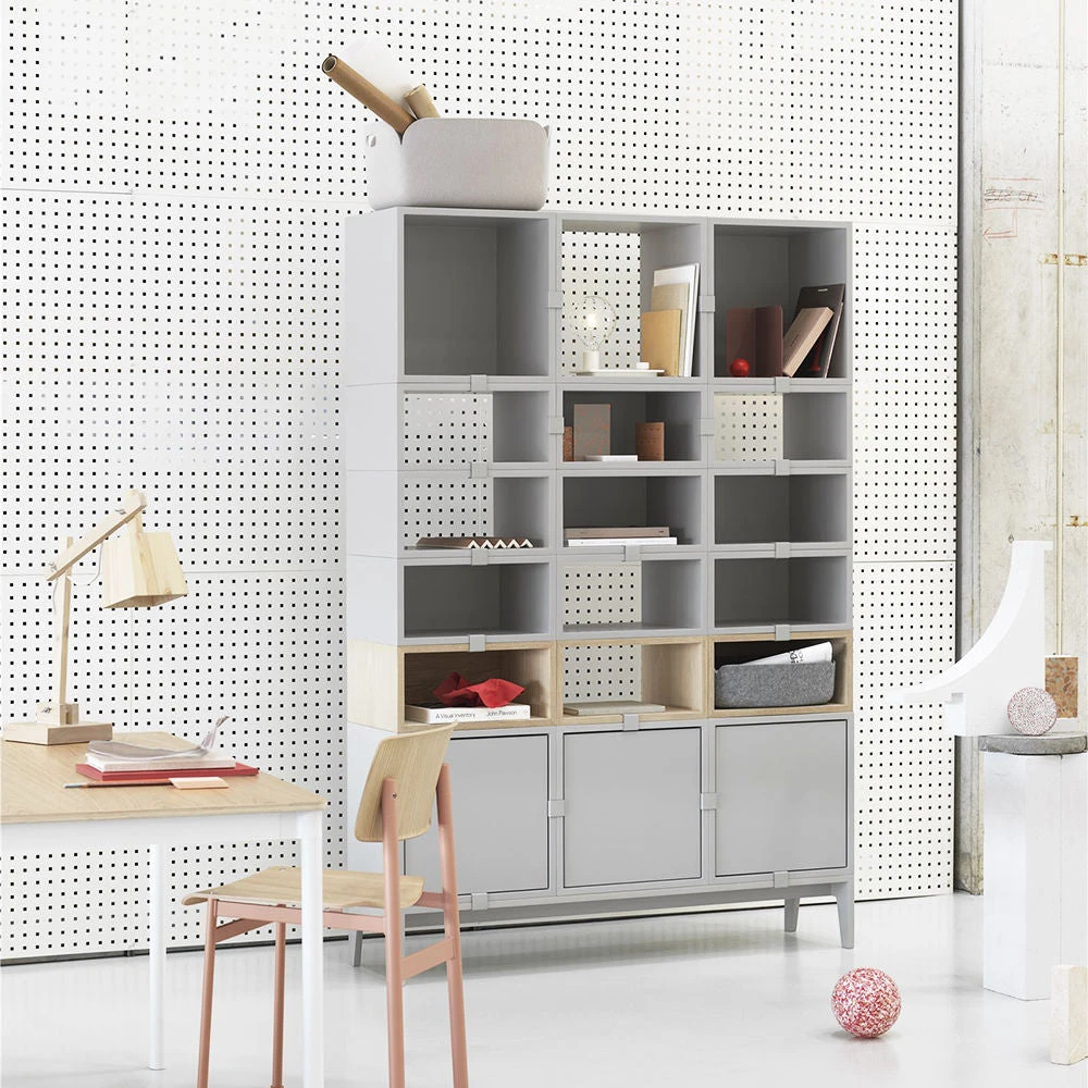Being both versatile and functional, the Stacked Storage System can be arranged and rearranged for the exact configuration that you’d like, whether it be as shelving setups, sideboards, bookcases, or side tables. The design can easily be refreshed by playing around with the space between the modules or mounting the modules with a backboard directly onto the wall.