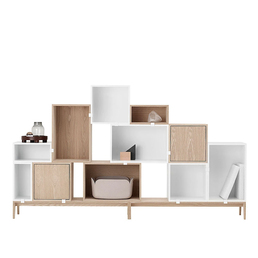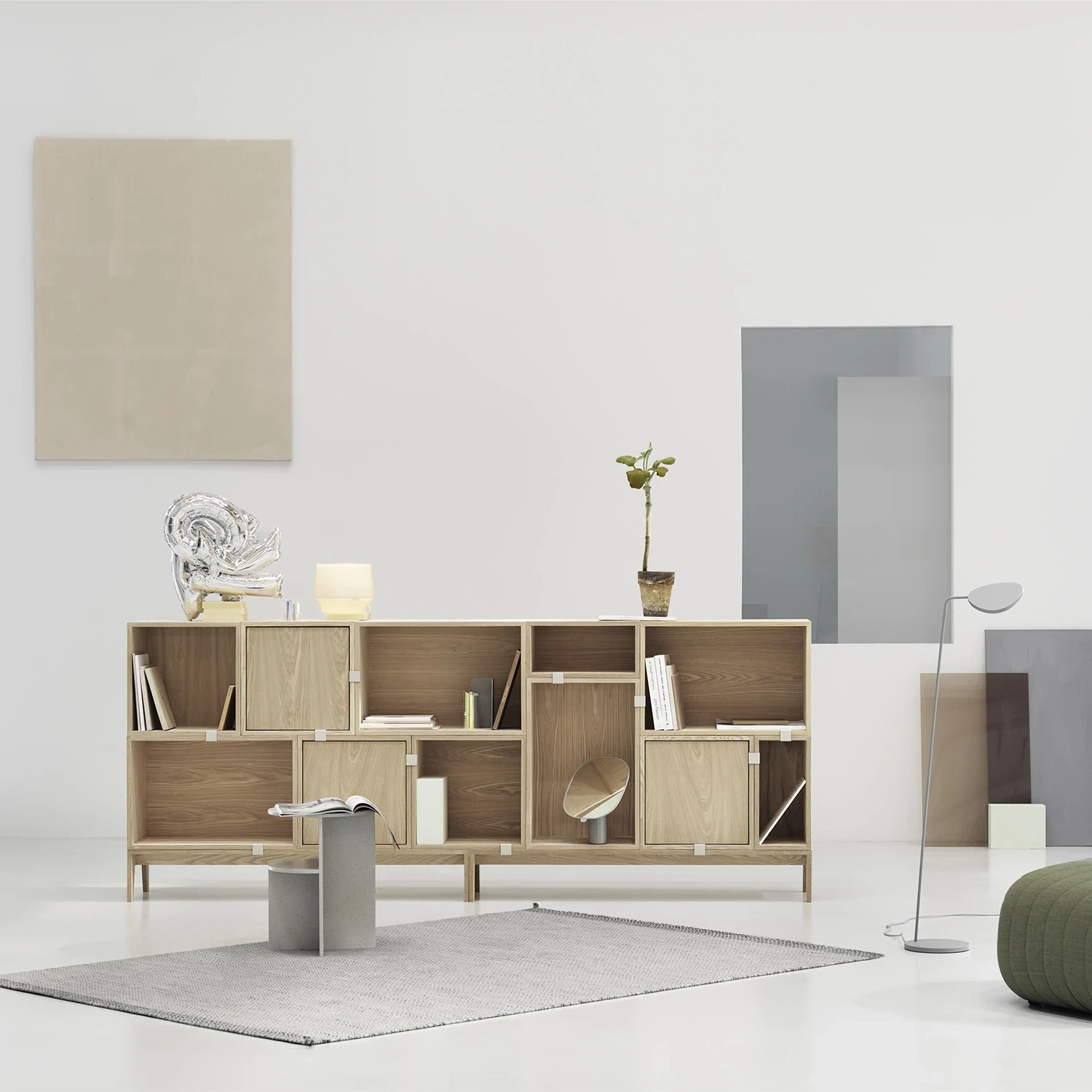 Being both versatile and functional, the Stacked Storage System can be arranged and rearranged for the exact configuration that you’d like, whether it be as shelving setups, sideboards, bookcases, or side tables. The design can easily be refreshed by playing around with the space between the modules or mounting the modules with a backboard directly onto the wall.