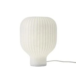The Strand Table Lamp references design history while remaining distinctly modern. Its shape is soft and playful, a sculptural design fitted with a hidden light source that illuminates the whole of its monolithic form. The lamp is made in a sprayed cocoon material that consists of tiny strands for a complex, intriguing structure that gives the Strand Table Lamp an almost cloud-like appearance. Filtering light through for a warm, comfortable glow, it brings a sense of comfort, harmony and a refined sensitivity to any room.