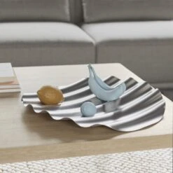 The Wave Tray brings a refined sentiment to the otherwise raw materiality of metal. Through its organic form that has been shaped in stainless steel, the expression is inspired by the undulations of a wave. The Wave Tray has a simple yet graphic expression that, paired with its grand sizes, makes a true statement in any setting.