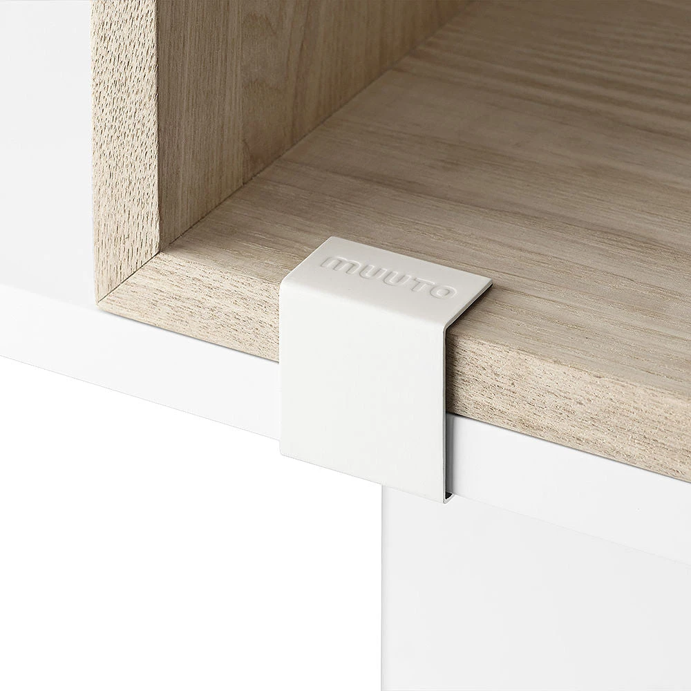 Being both versatile and functional, the Stacked Storage System can be arranged and rearranged for the exact configuration that you’d like, whether it be as shelving setups, sideboards, bookcases, or side tables. The design can easily be refreshed by playing around with the space between the modules or mounting the modules with a backboard directly onto the wall. Use Stacked Clips on all modules to ensure safety and stability.